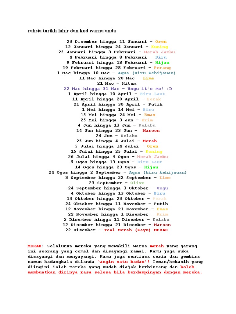 Rahsia Tarikh Lahir Dan Kod Warna Anda Pdf